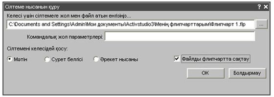 Флипчарт бетінде Сілтеме нысанын құру терезесі ашылады: Файлды флипчартта сақтау ұяшығын таңдап→ ОК командасын басыңыз.