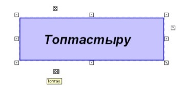 Төменде де үш нысан берілген: тік бұрыншты контейнер, оныі сыртқы сызығы және мәтін. Олар жеке-жеке нысандар. Алайда оларды топтап, біртұтас нысанға айналдырамыз: