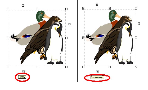 Осылайша әр суреттің орналасуын Жоғарғы↔Орта↔Төмен немесе Алдына↔Артқа командалары арқылы реттеуге болады.
