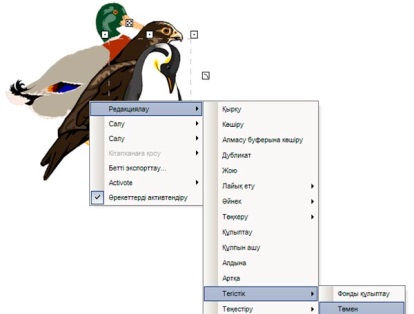 Немесе Редакциялау→Артқа/ Алдына пәрменін таңдауға да болады. Екі жағдайда да сурет артқа/ төменгі немесе алдыға/ жоғарғы қабатқа ауысады.