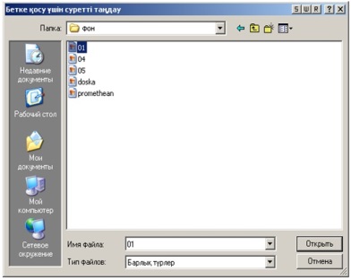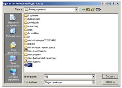 Файлдан флипчартқа салатын суретті таңдаңыз→ Ерекшелеңіз→Открыть шертіңіз.