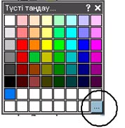 Егер берілген түстер палитрасындағы түстерді толықтырғыңыз келсе, Аспаптар панеліндегі Түстер палитрасын меңзердің оң жағымен шертсеңіз, Түсті таңдау терезесі ашылады.