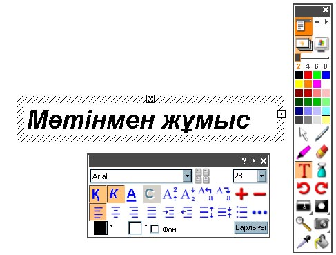 жылжытуыңызға болады. Бұл әрекеттер мәтін аспабымен жұмыс