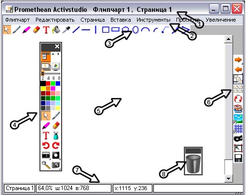 5 – Флипчарт. Негізгі жұмыс орны. Мұнда презентацияны ашуға, құрастыруға және көрсетуге болады.