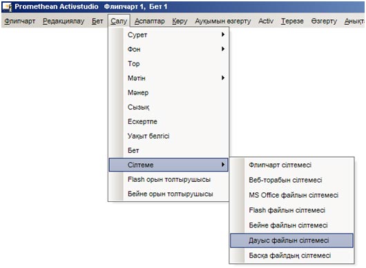 Флипчартқа аудио және бейнефайлдар салуға болады.