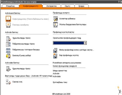 Activstudio 3 бағдарламасын орнатқаннан кейін «Конфигурация ету» командасын таңдап, алдымен профильді өзгерту керек.