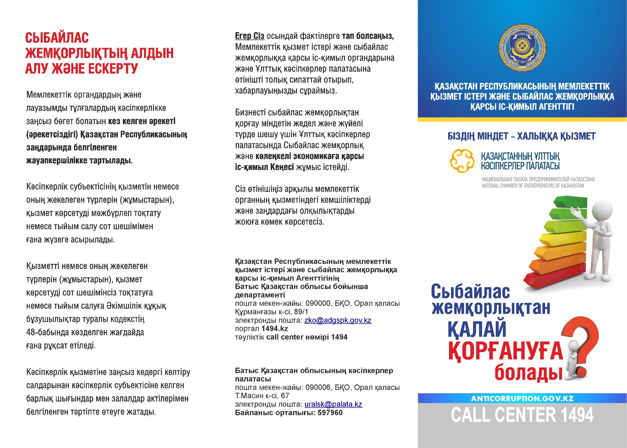 Үшінші мәселе – оқушыларға ұстаздарға үнемі үзілістерде сыбайлас жемқорлыққа қарсы брошюралар таратылып отырылады.