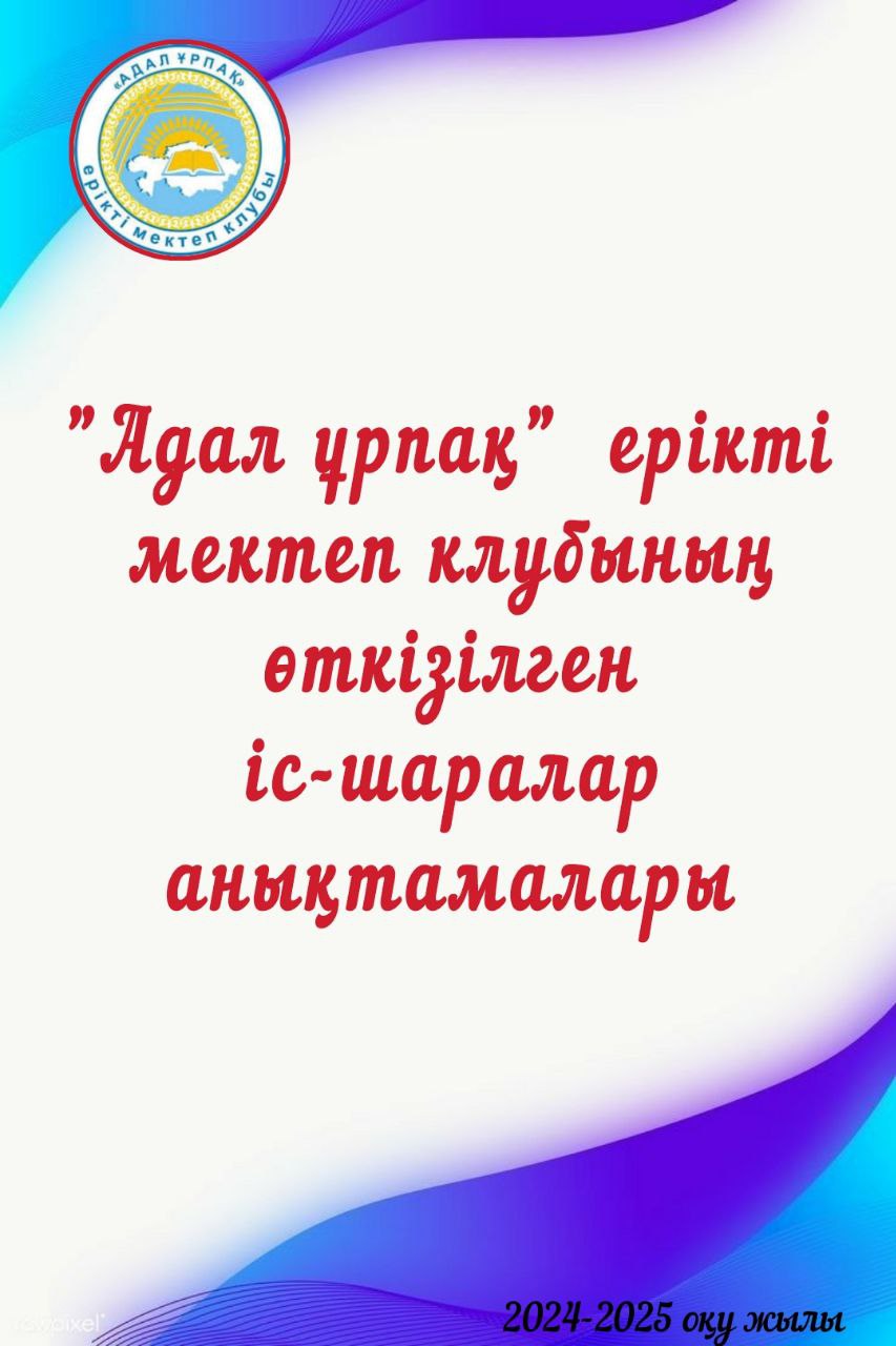2024-2025 оқу жылы бойынша «АДАЛ ҰРПАҚ» ерікті мектеп клубының