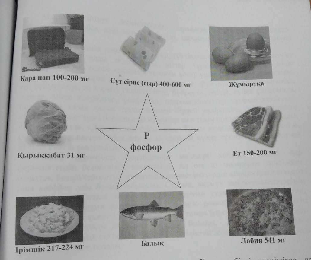 Тамак рационында фосфордың кажетті мөлшерде болғаны жөн. Фосфор мал мен өсімдік өнімдерінде мол. Өсімдік өнімдерінен бөлінген косылыстар ағзаға нашар сінеді, өйткені нашар ериді. Фосфор сырда, сүзбеде, етте өте көп. Әр өнімнің 100 г мөлшеріндегі фосфор төмендегі мысалда келтірілген.
