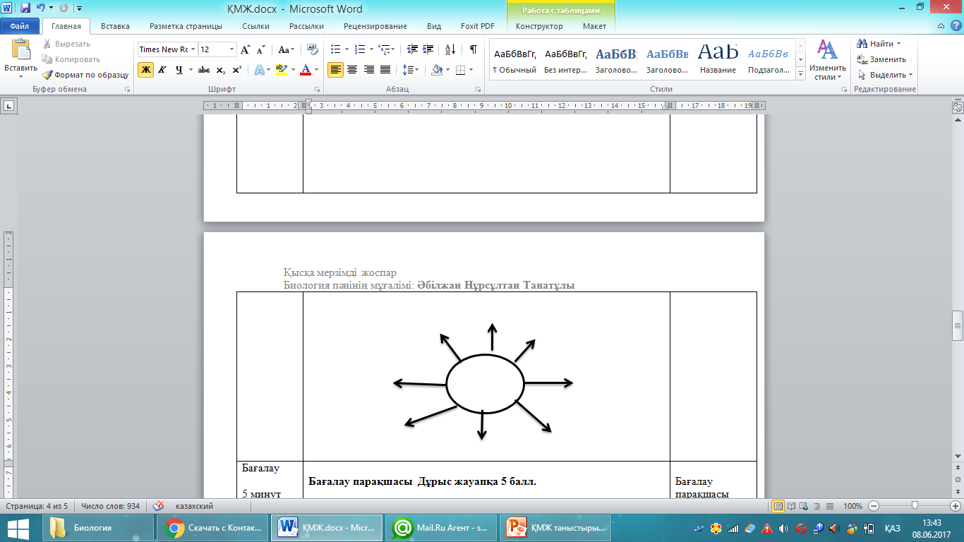 Бағалау парақшасы Дұрыс жауапқа 5 балл.