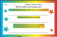 Кері байланыс: «Екі жұлдыз, бір ұсыныс» Үй жұмысы: 65-бет, 13-тапсырма: тұлғалардың құқық және бостандық туралы айтқан пікірлері мен ыңғайлас салалас құрмалас сөйлемдерді қатыстырып, эссе жаз. Эсседе көркемдегіш құралдарды пайдалан. |