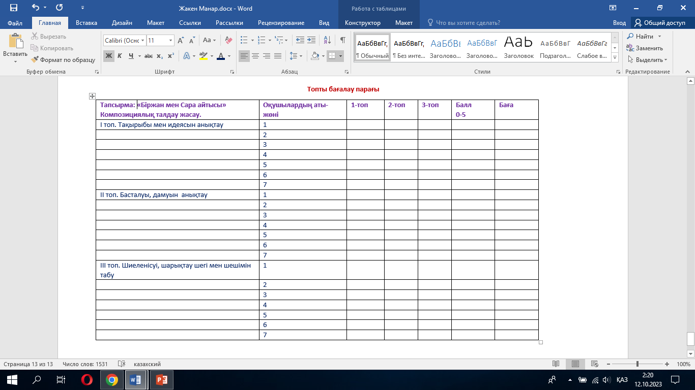 Бағалау критерийлері |