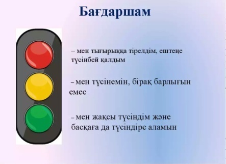 К ҚБ Бағдаршам. Оқушылар таңдаған түске қолдарындағы стикерлерін жабыстырады.