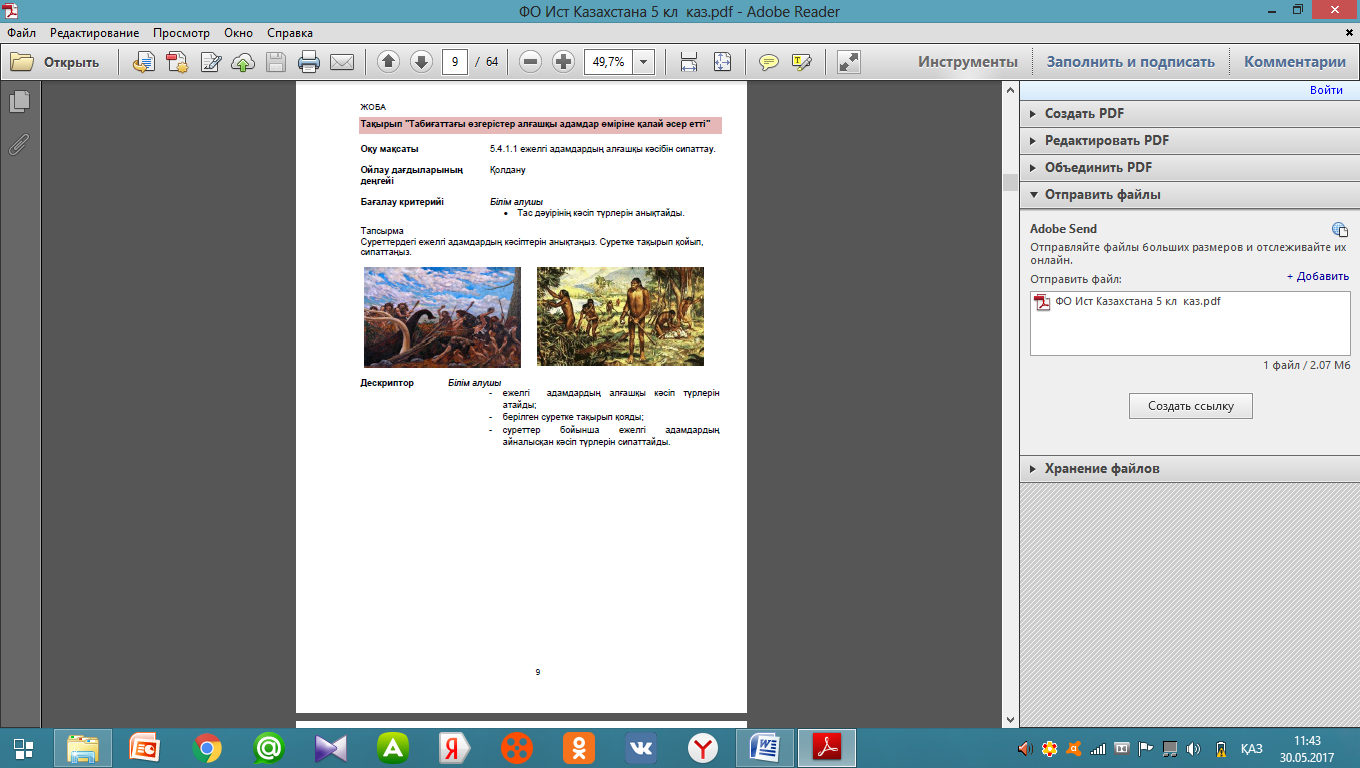 5.4.1.1 - ежелгі адамдардың кәсібін сипаттау. |