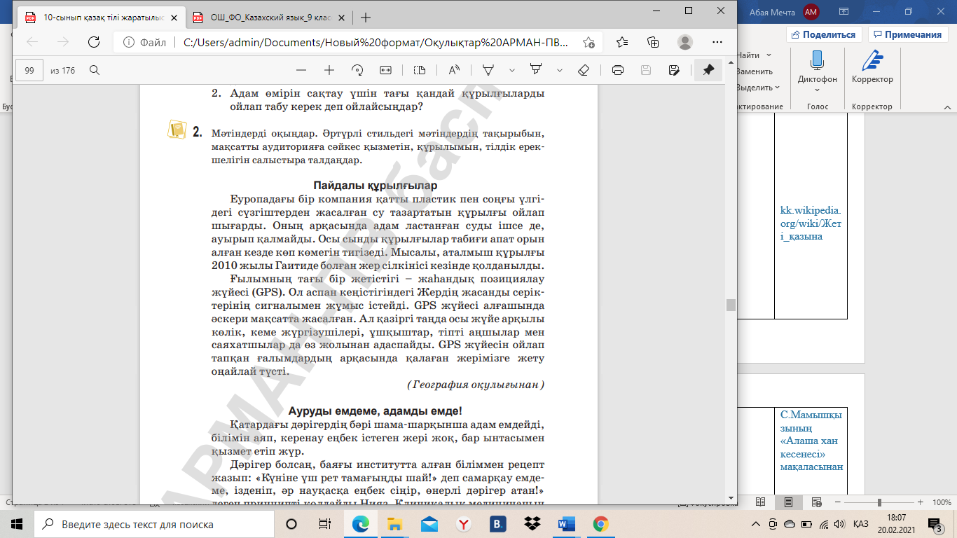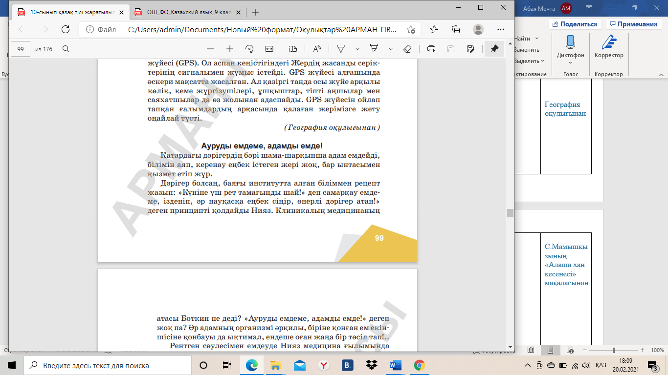 10-сынып «Қазақ тілі» Оқулығы География оқулығынан З.Шашкин нің «Доктор Дарқанов» романынан. |