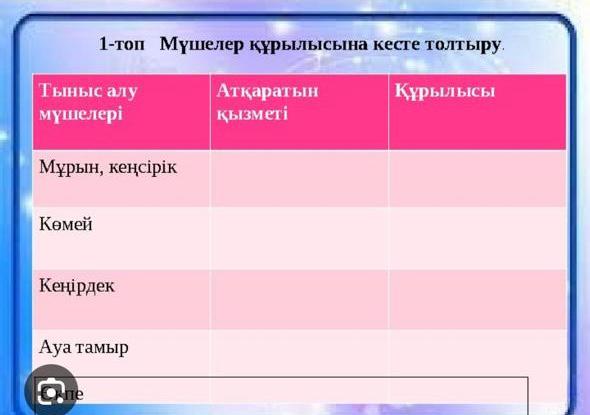 1.Тыныс жолдары: бронхылар, мұрын қуысы, кеңірдек, көмей мүшелерін ретімен жазады. 1._________ 2._________ 3._________ 4._________ |