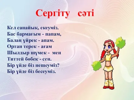 Дескриптор: Өлеңдердің өзі қалаған біреуін жаттқа айтады-1б Тамаша! Дескриптор: Әлемнің жеті кереметі туралы естіп, білгендерімен жұпта ой бөліседі-1б Кереметсіңдер!