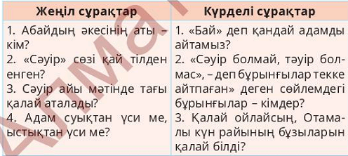 5 - тапсырма. Кесте бойынша сұрақтарға жауап бер.