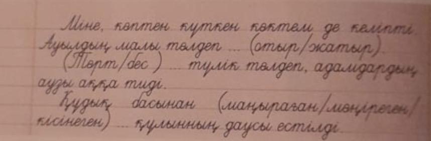 Көп нүктенің орына тиісті сөзді қойып жазады.