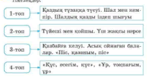 2.2.4.1 мақал-мәтел, жұмбақ, ертегі, тұрмыс-салт жырлары, әңгіме, өлеңнің жанрлық ерекшеліктерін анықтау 2.1.2.1 шығарманың мазмұнын дайын жоспар бойынша немесе өз сөзімен мазмұндау, үзіндісін мазмұндау, сахналау |