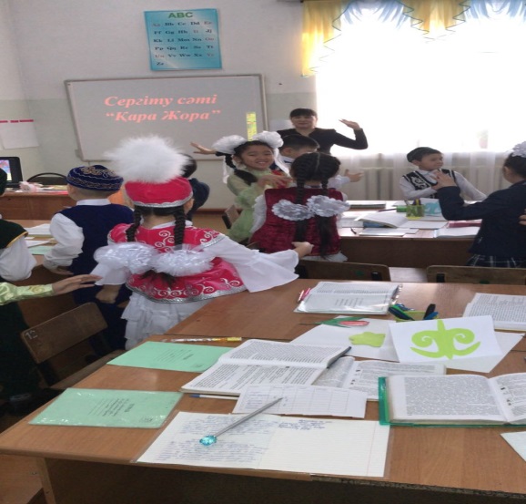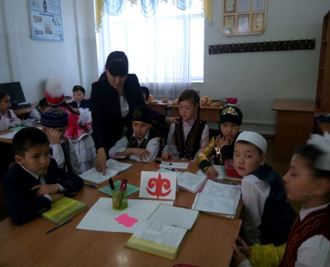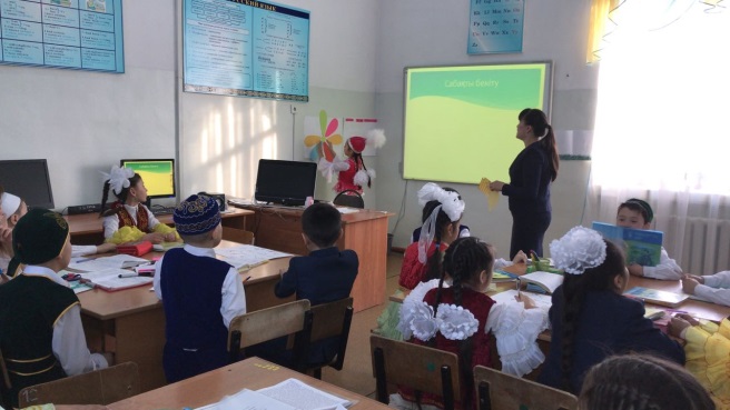 Ұйымдастыру кезеңінде оқушыларды психологиялық тұрғыда сабаққа дайындадым, яғни оқушылармен жылы шыраймен амандасып, оқу құралдарын реттелуін тексердім. Шаттық шеңберіне тұрып бір - біріне жақсы тілектер тіледі. Топқа үш топ болған соң үш түрлі –түсті ою орнек арқылы бөлінді. Әр топ мүшелері топтың көшбасшысын сайлап, топтың атын қойды. Топтың ұранын шығарды. Lesson Study - оқушылардың білімдерін көтеру мақсатында өткізілетіндіктен сабақта АВС деңгейінлегі оқушыларды мұғалімдер тобы бақылады. Үйге берілген тапсырманы тексердім. Үйге «Көктем » өлеңін жатқа айтуға берілді.Сабақтың тұсаукесеріне оқушыларға қызығушылығын арттыру үшін тақырыптың мазмұнына сәйкес Инсерт әдісі бойынша «Не білесің?» миға шабуыл жасай отырып, «Наурыз» деген тақырыпта видео –ролик көрсетіліп, жаңа сабақ тақырыбы ашылды. Әр бала өз ойын айта білді.Мәтіннің авторымен видео рарқылы таныстырып, оқулықпен жұмыс жүргіздім, яғни тақырыпты оқудың әр түрін пайдалана отырып ,сұрақ - жауап арқылы түсініктерін толықтырдым. Оқушылардың жауабын олардың білімдерінің деңгейін тексеру үшін ғана емес,сондай ақ оларға өз ойларын анық білдіруге, дамытуға және кеңейтуге мүмкіндік беру үшін де пайдаланылды.. Әр топқа тақырыпқа сай жеке тапсырмалар бердім.Топ бойынша берілген бөліктерді талданды. Әр топ түсінгендерін ортада айтты. «Наурыз» тақырыбына І топ – наурыз көже, ІІ топ – салт-дәстүр , ІІІ топ – Ұлттық ойындар туралы білетіндерін қағаз бетіне түсіріп постер қорғады. Бой сергіту үшін интербелсенді тақтадан «Қара жорға» биін көру арқылы қимылдар жасады. Сабақты бекіту мақсатында топтық тапсырмалар берілді .Сабақ қорытындылап, оқушылардың осы сабақ бойынша алған білімдерін тексеру, Гүл күлтешелеріне бүгінгі өтілген тақырыптан сұрақтар жасыру арқылы қорытындылаймын. бекіту мақсатында «Кубизм» стратегиясы бойынша тақырыптық сұрақ – жауап алынады. . Әр оқушыны өз дәрежесінде танып білді.Рефлексия. Білемін,білдім,білгім келеді стикерлерге өз ойларын жазу арқылы бекітілді.Бағалау. Бағалау парағы арқылы бағаланды.(Өзін -өзі бағалау,топтың бағалауы,мұғалімнің бағалауы) Әр тапсырмадан кейін бағаланып отырды, формативті бағалау жүріп отырды.Үйге тапсырма М. Дулатов туралы қосымша мәліметтер жинау, наурыз тақырыбына шығарма жазуға берілді. Сабақ өте тартымды өтті, оқушылар сабаққа аса қызығушылықпен қатысты. алынады Lesson Study сабағында АВС оқушыларын бақылау өз дәрежесінде өтті. АВС деңгейіндегі оқушылармен сұхбат жүргізеді, сұхбат барысында С деңгейіндегі оқушылар:- Берілген мәтінмен жұмыс жасай алды;