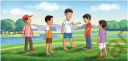 1.Мұғаліммен сәлемдеседі. 2.Өлең шумағын мәнерлеп айтады . |