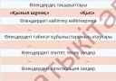 4.1.4.1 сөйлеу барысында мақал-мәтелдерді, өлең жолдарын, нақыл сөздерді, шешендік сөздерді және вербалды емес тілдік құралдарды қолдану 4.2.1.1 шығарманы дауыстап түсініп, рөлге бөліп, мәнерлеп оқу, теріп оқу, шапшаң оқу 4.3.4.1 мұғалімнің көмегімен шығарманың құрылымын, стилін жетілдіру, өз бетінше сын тұрғысынан бағалау және лексикалық, орфографиялық, пунктуациялық қателерді тауып түзету |