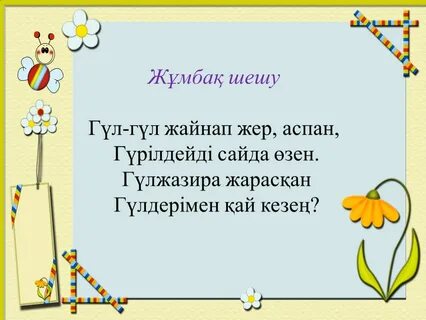 Балалардың барлығы орындарынан тұрып, қимыл-қозғалыс жаттығуын жасайды. Психологиялық ахуал қалыптастыру Үй тапсырмасын айтады Әңгімелейді Өлеңді оқиды Сергіту сәтін жасайды. Тапсырманы орындайды Кері байланыс |