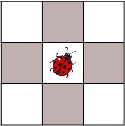 Тақтада төмендегідей сурет ілінеді. 9 ұсақ шаршыдан құрастырылған үлкен шаршы ортасында қоңыз суреті. Бастаушы суретке теріс қарап тұрып, қоңыздың ұшу бағытын айтады, егер қоңыз шаршы сыртына шығып кетсе, қатысушылар қол соғады. Бастаушы ауысады. Бірнеше рет қоңызды шаршы сыртына шығарып алса, онда сурет алынып тасталып, қатысушылар қоңыздың бағытын оймен елестете отырып, қол соғады. Мысалы: Қоңыз ортада, оңға ұшты, жоғарыға ұшты, оңға ұшты. Қатысушылар қол соғады, себебі қоңыз сыртқа шығып кетті.