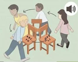 Дөңгелектерге орындықтар қойылады, ойыншылардан бір кем. Мұғалім тақырыпты таңдап, жүргізуші рөлін атқарады. Ол берілген тақырып бойынша сөздерді диктант етеді, ал қатысушылар орындықтарды айналып өтеді. Ойыншылар тақырыпқа қатысы жоқ сөзді естіген бойда орындықтарына отырады. Отыруға үлгермеген адам ойыннан шығып, өзімен бірге орындықты алып кетеді.