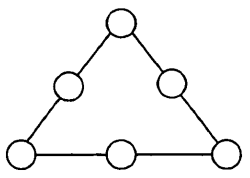 4-мысал. Есеп шарты: 1-ден 6-ға дейінгі сандарды (цифрларды) дөңгелектің ішіне үшбұрыштың әрбір қабырғасында тұрған сандардың қосындысы 12-ге тең болатындай етіп орналастырыңдар.