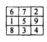 Шаршының бос тор көздерінің орнына 3, 4, 5, 6, 8, 9 сандарын оның кез келген горизонталь, вертикаль және диагональ бойында тұрған сандардың қосындысы бірдей сан болатындай етіп, жазып шығыңдар.