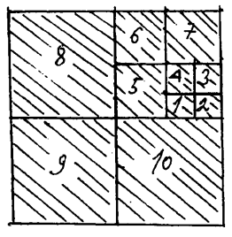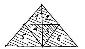 Шешуі: Үшбұрыштың ішіндегі фигураларды нөмірлеп шығайық (суретте көрсетілген).