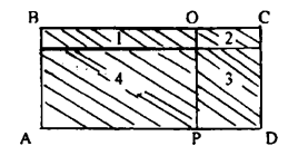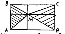 Шешуі. Берілген тік төртбұрышты A,B,C және D әріптерімен, ал оның ішіндегі қиылысатын нүктесін –M деп белгілейік. 1-есепті шешкеннен кейін M нүктесі арқылы горизонталь және вертикаль кесінділер жүргізсек, онда ABCD тік төртбұрышының бөліктері оның боялмаған бөліктеріне жіктелетіні белгілі болып шыға келеді.