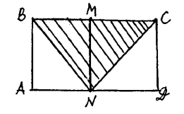 Шешуі. Берілген тік төртбұрыш пен боялмаган үшбұрышқа белгіленуен енгізелік. Вертикаль MN кесіндісін жүргізелік. ABCD тік төртбұрышы ABMN және NMCD тік төртбұрыштарына жіктеледі. ABNM тік төртбұрышының боялған және боялмаған бөлігінің ауданы тең. Өйткені тік төртбұрыштан диагоналы оны теңдей етіп, екі фигураға бөледі, ал бірдей фигуралардың аудандары да бірдей болады. Осы сияқты NMCD тік төртбұрышының боялған және боялмаған бөлігінің аудандары да өзара тең болады. Демек, ABCD тік төртбұрышының боялмаған бөлігінің ауданы оның боялмаған бөлігінің ауданы 5 см^2-қа тең болады.