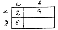 Шешуі: Мынадай шартты белгілеулер енгізейік. Тік төртбұрыштың ауданы мынаған тең: S=(a+b)(x+y). Мынаны ескереміз: ax=2, ay=6, bx=4. Сонымен бірге, x(a+b)=6 және a(x+y)=8. Соңғы екі теңдікті көбейтіп табатынымыз: