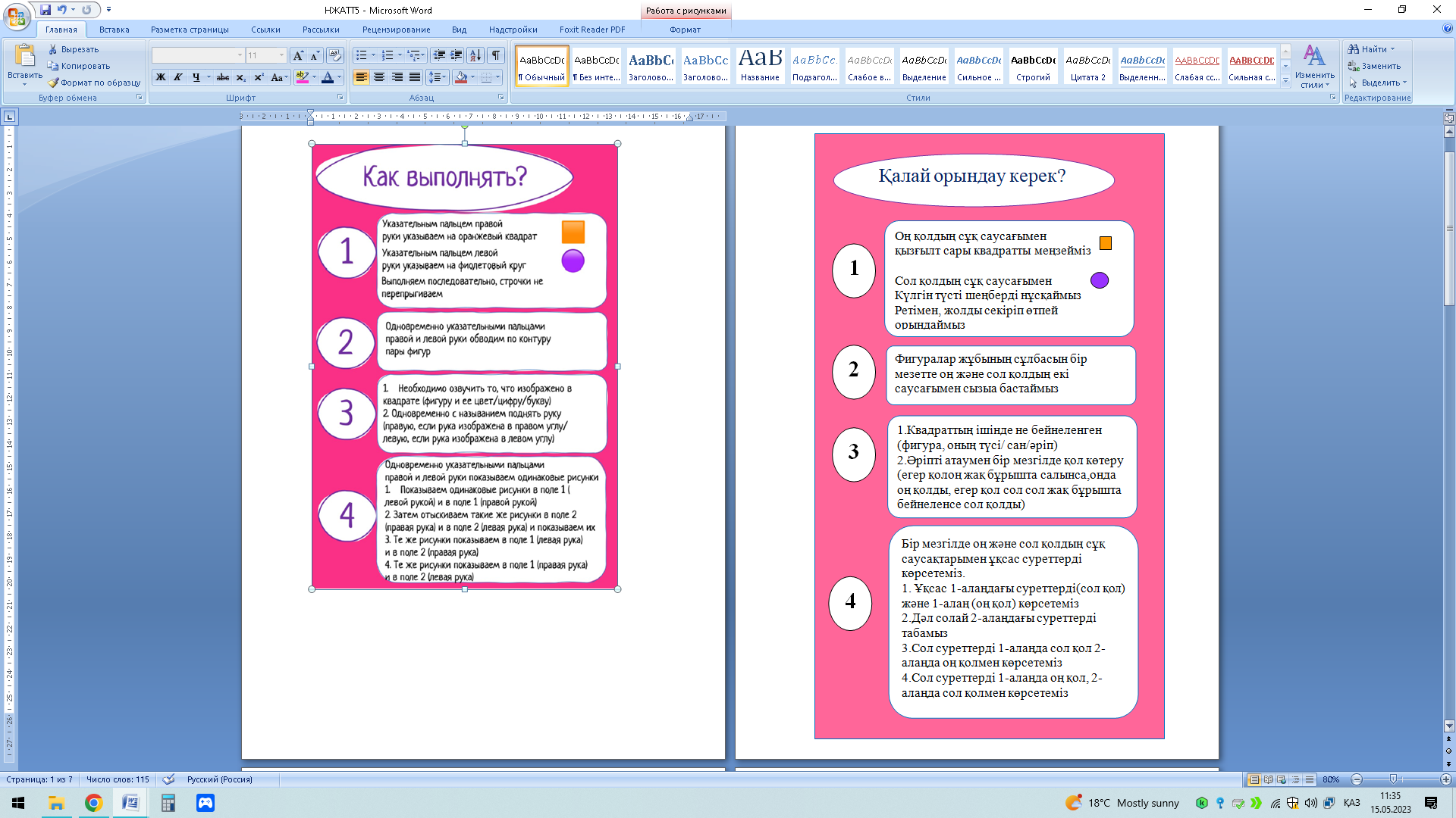 10. Жұмысты пайдалану бойынша қорытындылар мен ұсыныстар: Нейропсихологиялық әдістердің кейбір элементтерін үйірме сабақтарына пайдаланып көрдім. Нейропсихологиялық әдістерді пайдалану барлық психикалық әрекеттерге зиянын тигізетін симптомдардың пайда болуының алдын алуға және осы белгілерге компенсация жасауға көмегін тигізетін өте тиімді құрал.
