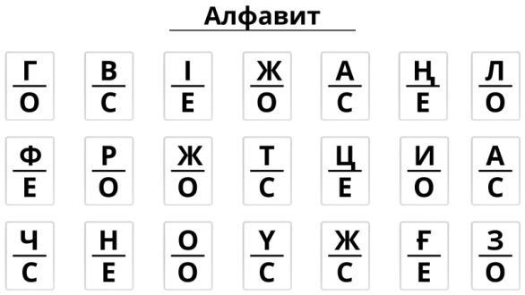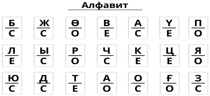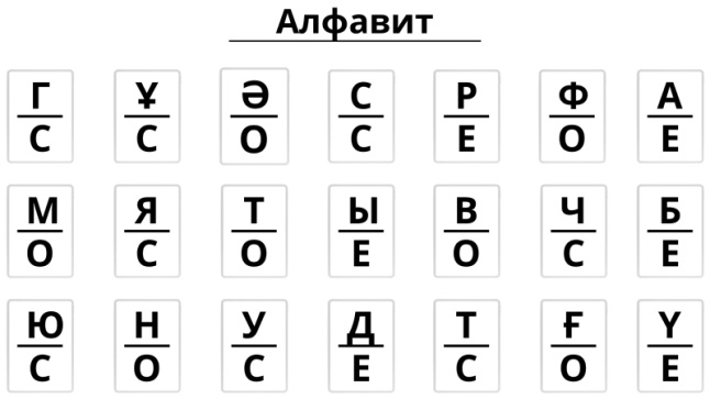 Сонымен, үстіңгі қатардағы әріптерді дауыстап оқығанда берілген әріп астында белгіленген қолды көтереміз. Үшінші қатар тапсырмасы отырып орындалады.