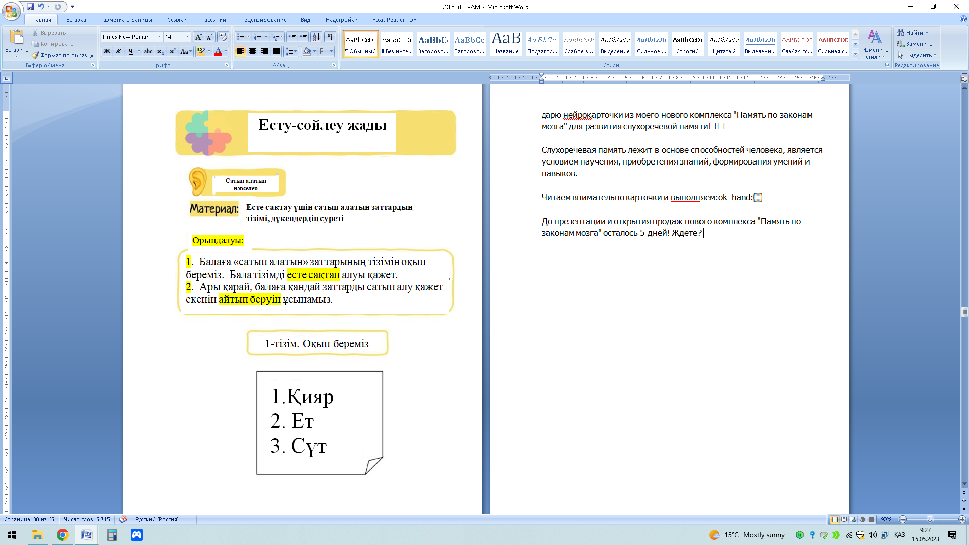 Есту – сөйлеу жадын дамыту жаттығулары