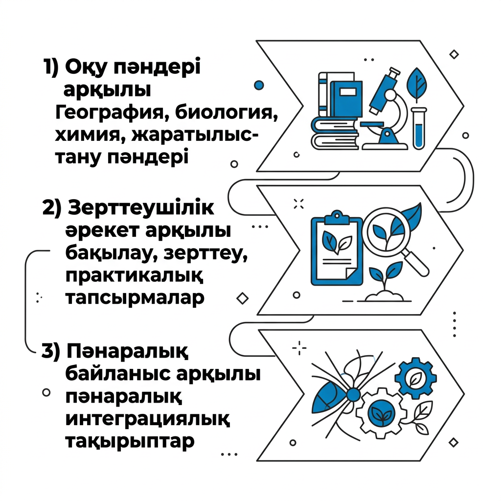 Бұл жаңашыл тәсілдер оқушылардың оқу процесіне белсенді қатысуына мүмкіндік береді және олардың табиғатқа деген қызығушылығын арттырады.