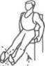 отырып, қолдар орындықтың арқасына, аяқтар алшақ, іш бұлшықеттері,