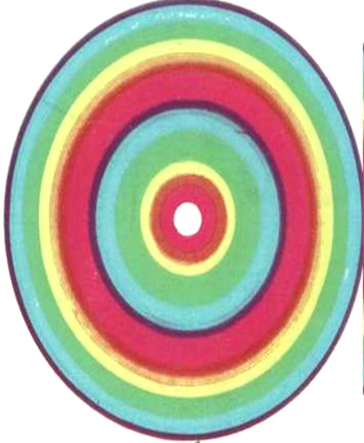 Күндізгі жарықта орталықтан шетке қарай түрлі-түсті шеңберлердің санын санаңыз, содан кейін қарама-қарсы бағытта Тек санап қана қоймай, көршілес шеңберлерден ерекшеленетін әр шеңбердің түсін атаған пайдалы.