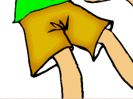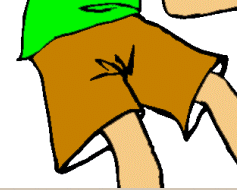 12 Екі тіктөртбұрыш ( бірінің астында бірі орналасқан ) Ол түс сызықшасының оң жақ жоғарғы бұрышында негізгі және фондық түстер көрсетілген. ( құралдар тақтасындағыдай ). Активті түс екі еселенген шекарасыменен қоршалған. Оның қасында түстерді дәл нақты түрде таңдауға мүмкіндік беретін түстер бағыттауыш жолақтары бар. Мысалға ашық-коңыр түсті таңдаңыз. Оның түс жолағындағы көреткіші: R -200,G -130, B -0 . Бұл түспен фотогрофтың шортыйын бояңыз, бірақ алдын ала сықырлы таяқшаның көмегімен ерекшелеп алыңыз. Аймақты ерекшеленген күйінде қалдырыңыз.