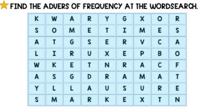 FIND THE ADVERS OF FREQUENCY AT THE WORDSEARCH.