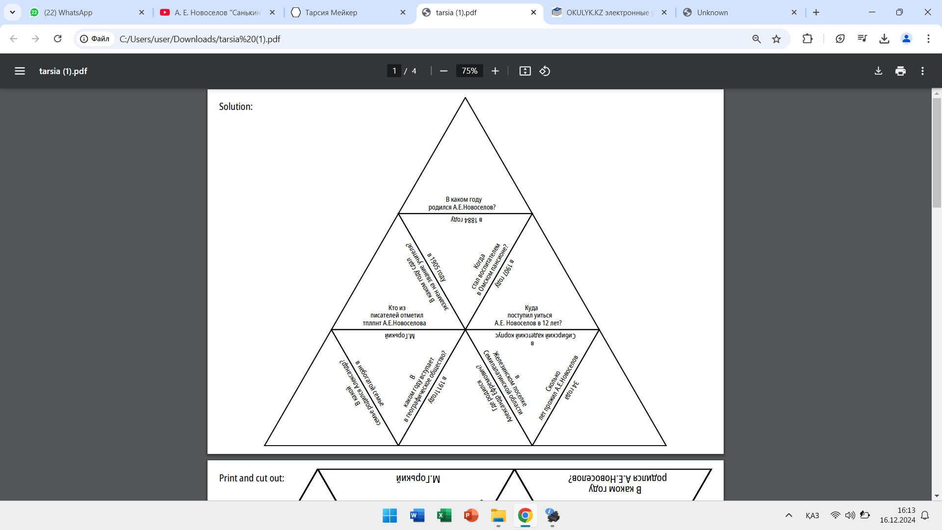 Составляют из мелких треугольников один большой треугольник, так чтобы был вопрос и на него ответ