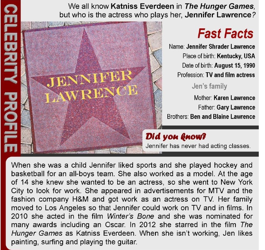 2. What films has Jennifer Lawrence starred in? Titanic / Transformers / Winter’s Bone / The Hunger Games