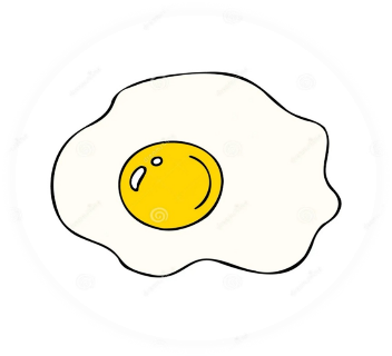 Fried egg cards, pan, spatula