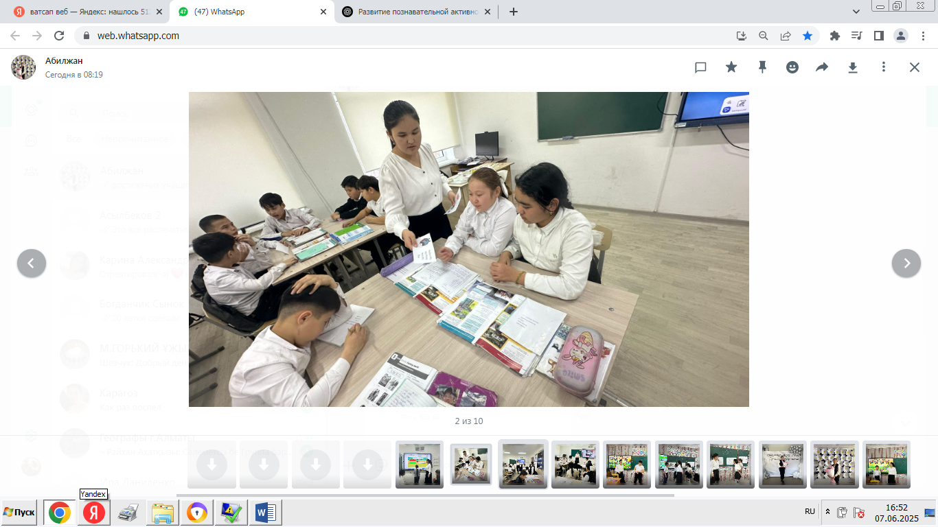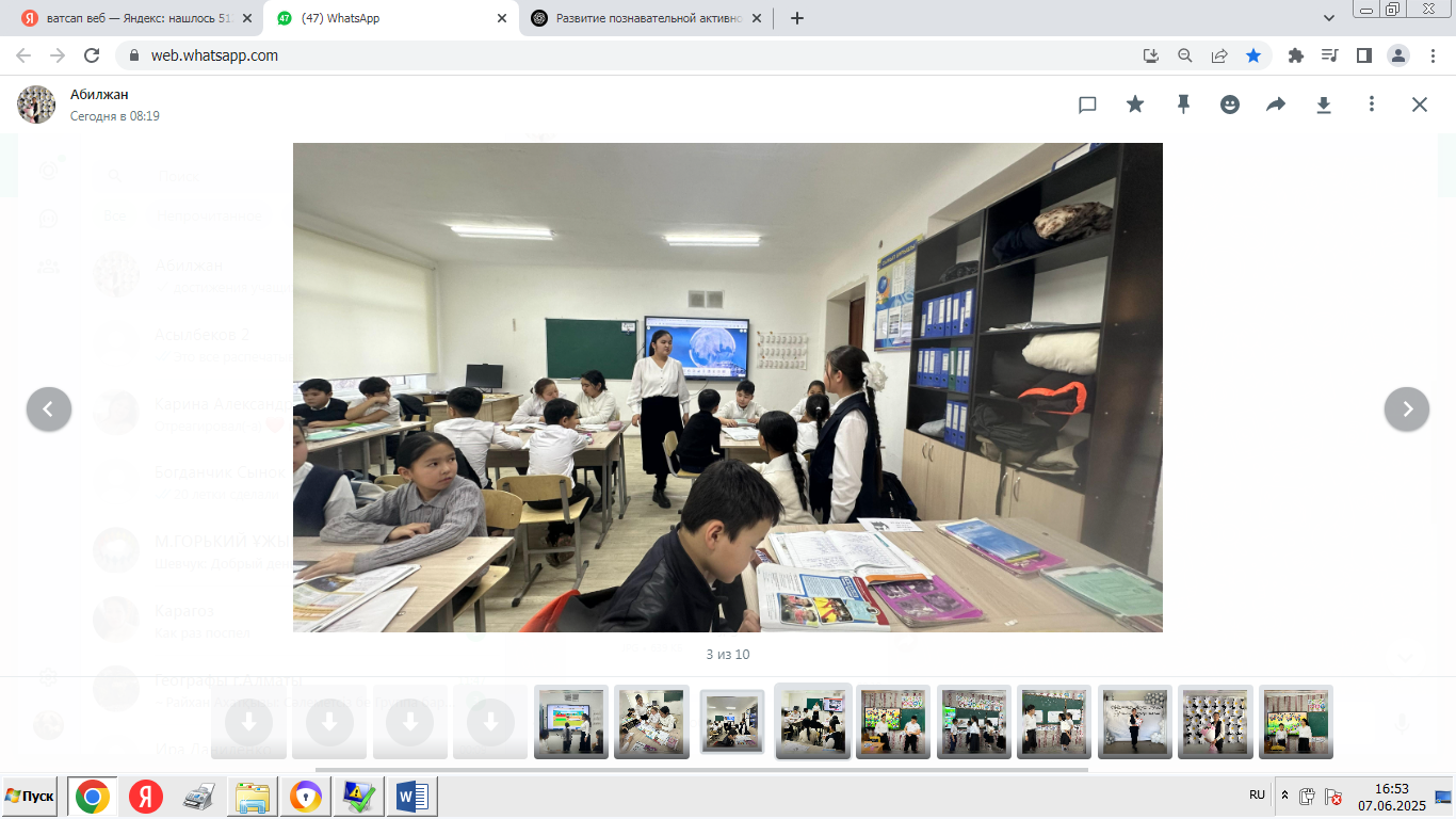 Тәжірибе растады: оқушы өз ісінің мағынасын қашан сезінетінін білгісі келгенде, ол оқуды қуанышпен бастайды. Осылайша, танымдық белсенділікті арттыру қосымша міндет емес, баланың жеке өсуіне бағытталған заманауи сабақтың органикалық бөлігі болып табылады.