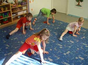 ногах, продвигаясь вперед, - зайки идут в гости. После этого дети