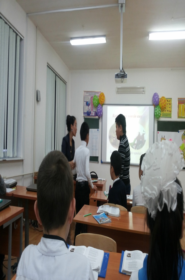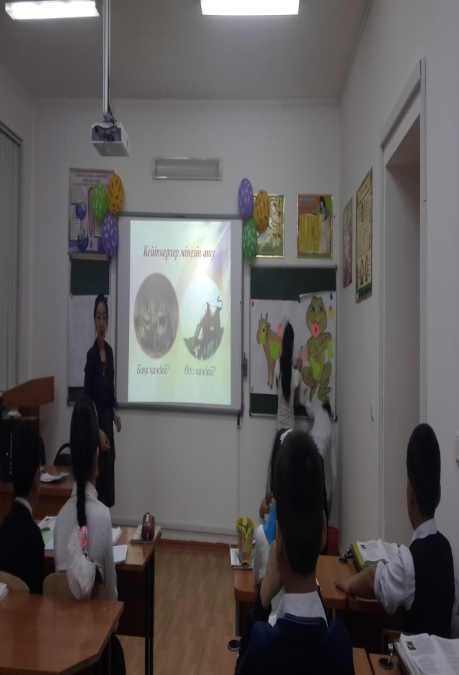 -Балалар, бүгін біз сабағымызда осындай адам бойында кездесетін жағымсыз қасиеттерді көрсететін мысал өлеңмен танысамыз.